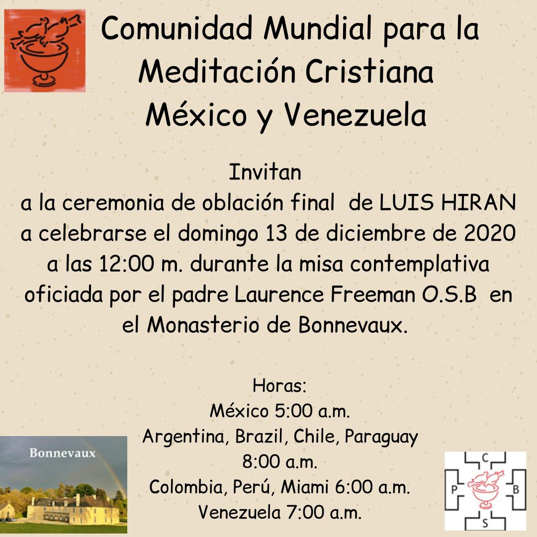 Para donativos: http://tiny.cc/aporte-adv20 Información adiconal: gparrodi@wccm-mexico.org